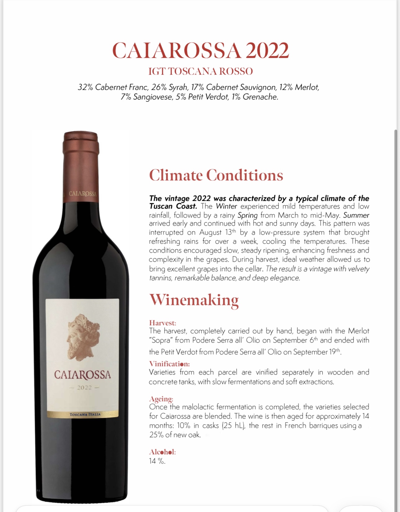凯罗萨干红葡萄酒 2022年 750ml 14%